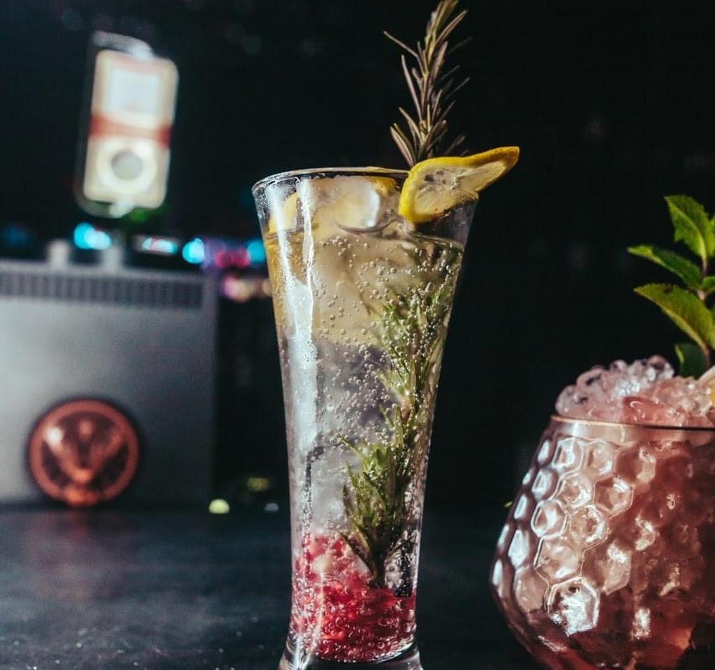 Dining and club with modern baroque feel and curved mirrored bar, for lounge music and deep house.