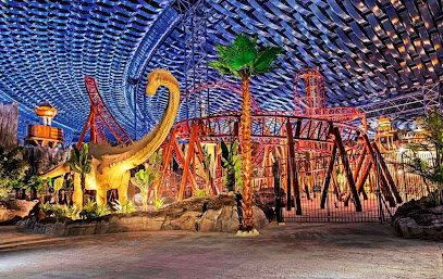 Large indoor amusement park offering rides, eateries & shows with Cartoon Network & Marvel themes.
