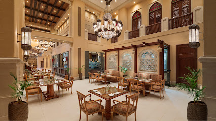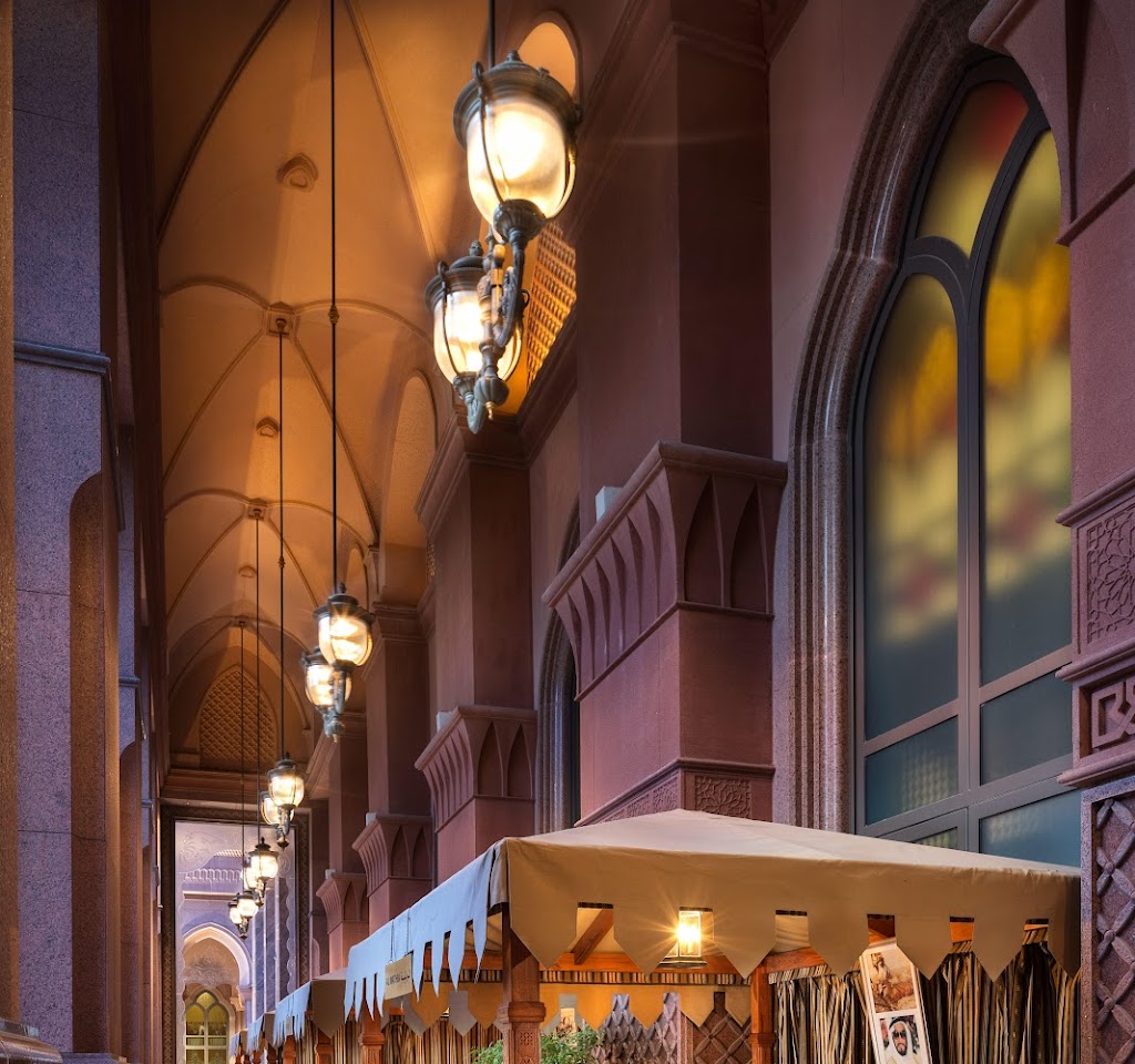 Refined restaurant with a terrace in the Emirates Palace offering upscale Middle Eastern cuisine.
